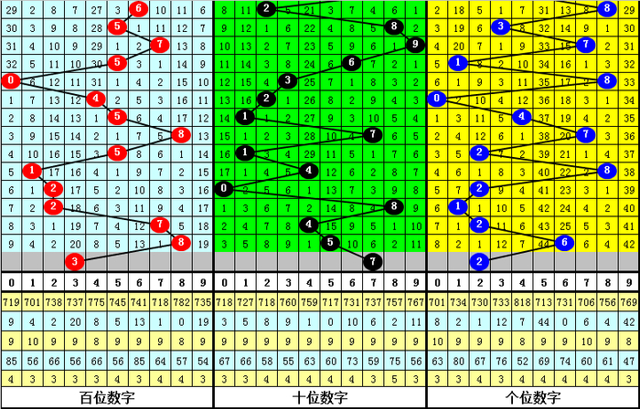 另外,在组选0-9的号码分布中,号码3、6表现最冷,开出9次;号码2走势最热,开出了19次。本期预计号码组236中落号,参考号码236。
