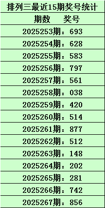 开奖回顾:排列三第2025267期开出奖号:856,其类型为:组六,直选形态为:偶奇偶、大大大、220路、温冷冷、合质合。